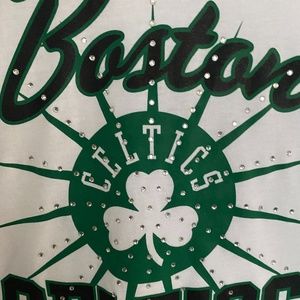 Adidas Boston Celtics white t-shirt with crystals. In good pre-loved condition. Material tag missing. Size Large.