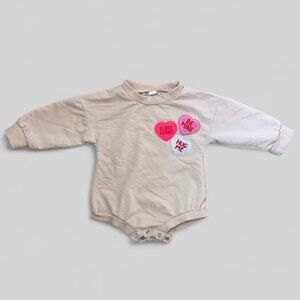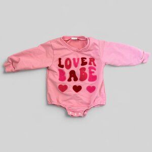 The Lover Babe baby girl long sleeve one piece tops and fleece pants Lot/Bundle! Contains six long sleeve one piece tops that snap at the groin, one long sleeve sweatshirt, and two long fleece pants. All pieces are between 6-12 months with some that are 9-12 months.