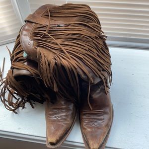 Hard to find Corral Vintage Fringe Boots size 10. Well broken in and super comfortable. I get so many compliments from mostly men and many women when I’ve worn these.
