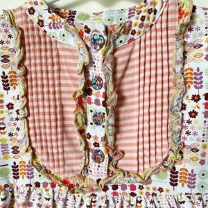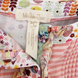 Keywords: matilda jane, cornelia, top, shirt, libby, long sleeve, flowers, butterflies, striped, ruffle, cotton blend, spandex, pink, purple, peach, coral, orange, fall, toddler, girls, 2