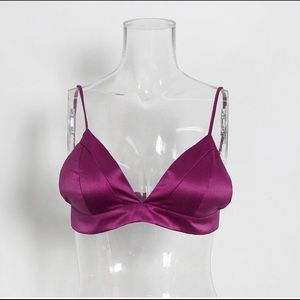 A beautiful 3pc satin skirt set with button closure. Perfect for work, happy hour or drinks with the girls. Blazer, bralette and mini skirt. New with tags.