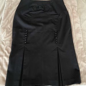 EUC Body by Victoria grey pencil skirt. Skirt has two cute little pleated slits in the back with some accent buttons. Side zip up closure. Size is a 2 and has a little stretch but not much. More pics to follow with measurements.