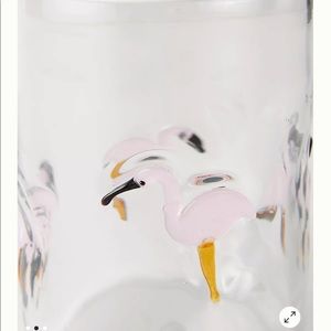 Crate&barrel Keko Flamingo 🦩 Double Old-Fashioned Glasses. Set of two. Pale pink flamingos strut across our double old-fashioned glass, bringing tropical energy to Coconut Mojitos, Mai Tais and Piña Coladas. Handmade by talented artisans, the avian beauties crafted of swirled glass texture the soda lime glass vessel. Approximately measurements: 3.5"Dx4.02"H. Handmade palm trees. Material: Glass. 12-oz. capacity. Dishwasher-safe. Excellent conditions. Brand new with tag