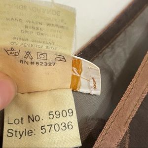 Color is brown but in some light, it looks like a very dark green so dark it looks brown. Quite a beautiful color. Wish it fit me!