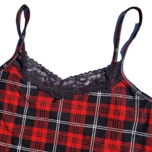 PLUS size alt plaid lace-trimmed tank