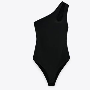 One shoulder cutout detail bottom snap button closure bodysuit.