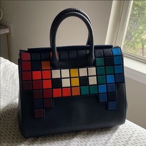 Anya Hindmarch Ephson Small Space Invaders limited edition bag with pixel mosaic design leather bag that can be both hand carried and carried on shoulder with canvas strap. It has only been carried a few times. comes with original dustbag and authenticity card.