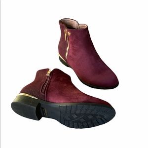 Faux Suede Burgundy and Gold Ankle Boots Size 7