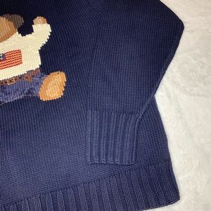 Beautiful Rare Polo Ralph Lauren Hand Knit Sit Down Bear Navy Sweater! Kept in excellent condition with only slight piling, this piece has lots of life still left for that die-hard lo head! No stains or discoloring off any kind!