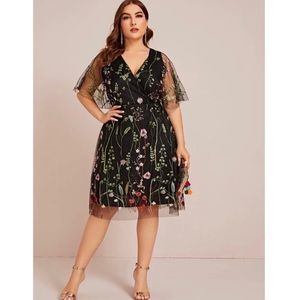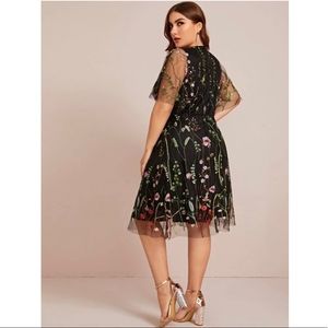 NEW|Plus Size Floral Embroidered Mesh A-Line Dress