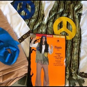 HIPPIE COSTUME/top/pants/hair tie-LARGE 36-38 free