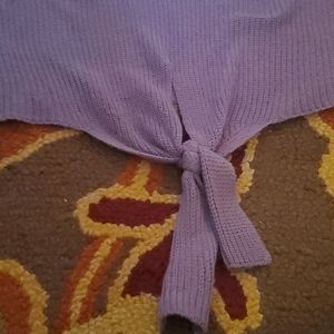 This is a comfy and cozy sweater. Sweater is warm and has a tie knot in front of top for style. It's an xtra large. Can be worn with casual jeans or dress it up with jeans,boots or heels. I'm sure you'll love it. I wore it a few times. It's long sleeved.. Thank you for your interests.
