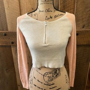 Peach and cream colors. From American Eagles Outfitters. Size S, like new condition. I don’t believe it was ever worn.