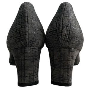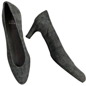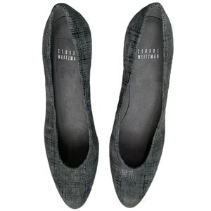 Stuart Weitzman gray suede plaid narrow 2.5” heel