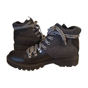 Denim blue with small white polka-dots. Gold hardware. White lace ups & soles