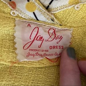 Beautiful vintage jacket, dress and belt coordinate by the Jay Day Dress company. This dress is not in perfect condition. There is some discoloration around the armpits and general wear and tear that happens with a well loved vintage piece. There is no size tag- please see measurements.