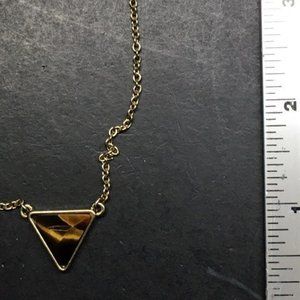 Gold Necklace Earrings Triple Chain Triangle Brown Stone V