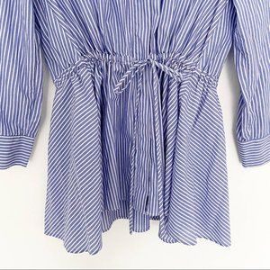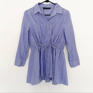 Zara Pinstriped Cinched Waist Button Down Shirt Size Medium