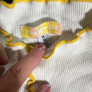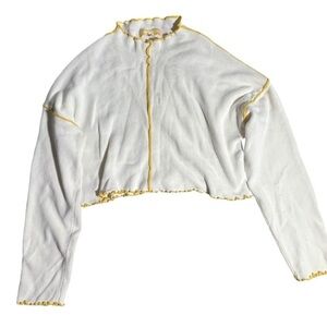614-Urban Outfitters long sleeved Yellow and white crop top #urban #sweater