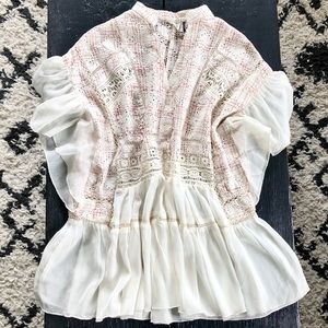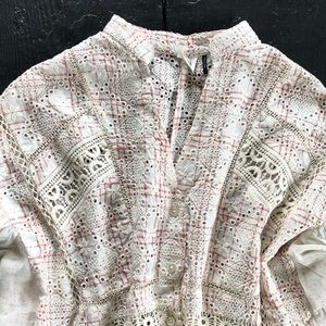Gorgeous blouse in ivory and pink. Beautiful details, oversized fit, feminine and flowy. So pretty with skinny jeans and boots. EUC. Thanks!