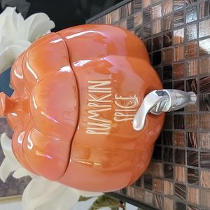 Rae Dunn Pumpkin Spice Beverage Dispenser! Perfect for the holidays! This adorable pumpkin dispenser is not only TOO CUTE, but it is also an iridescent color to it that makes it even CUTER...if that's possible LOL!! Get ready for Halloween with this gem!