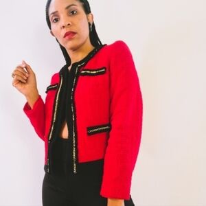Sleveless black velvet shift dress with gold star and crystal accents. Two front pockets. Buttonson each side. Adjustable button straps.
