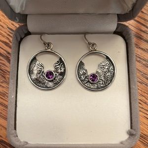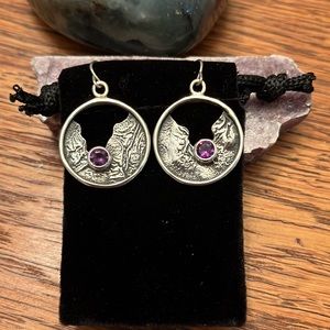 These gorgeous pieces were handmade right here in Texas! This pair has only been worn for the photo, so this set is yours to have! I like wearing amethyst in earrings as it keeps this potent third eye stone right where I need it! While not stamped, these pieces are handmade sterling silver; they polish beautifully✨🌞