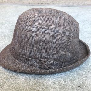 A very classy fedora hat for a very classy person. Plaid brown, blue, light tan.