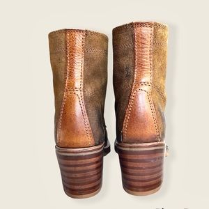 Frye Sabrina 6G Tan Suede/Leather Retro Lace Up Classic Combat Moto Ankle Boots