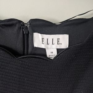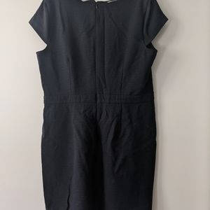 Lovely black dress with scalloped collar detail. Slight pleating in front is very flattering. One of the most versatile dresses I've ever owned! Great for business events, presentations, cocktail parties, weddings. Truly a classic I'm sad to be parting with but it's too small now :(