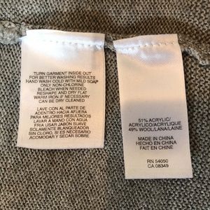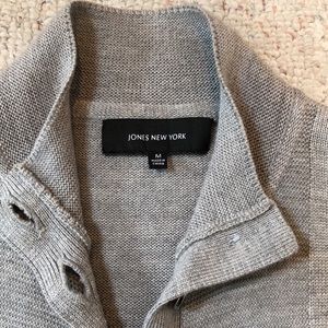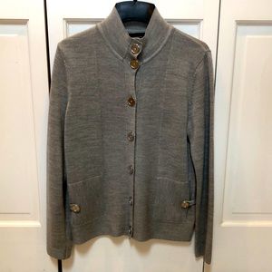 Wool/acrylic full button front with 1 inch buttons. Shoulder to waist is 22 inches. Excellent condition with NO stains or holes.