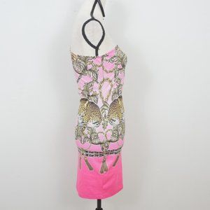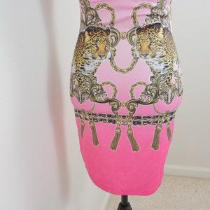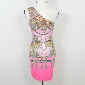 Symphony One Shoulder Pink Gold Baroque Leopard Graphic Size Medium Dress