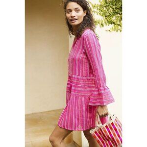 Cinq a Sept Rhonda Navy Blue Silk Organza Puff Sleeve Mini Dress - Size 8. (I)