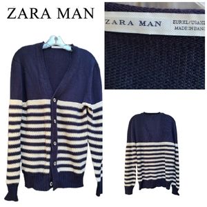 ZARA MAN V-NECK NAVY BLUE & CREAM CARDIGAN SIZE XL