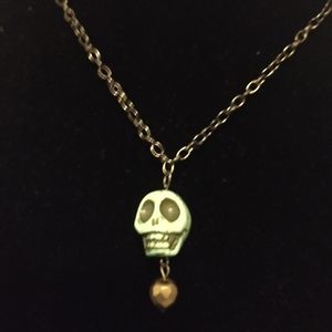 Green skull choker. 16in long. Dark bronze color chain with green skull.