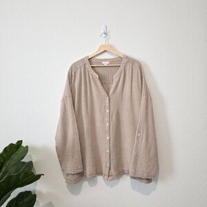 FREE PEOPLE BEACH Gray Long Ruffle Tiered Sleeve Oversized Knit Top sz M