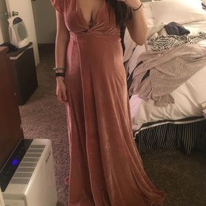 This beautiful dusty rose dress was worn once to my cousins wedding when I was 9 months pregnant. I also showed some photos trying it on earlier, and both fit great and covered my bump perfectly. Can also be worn not pregnant, the beauty of wrap dresses is they can work for anyone.