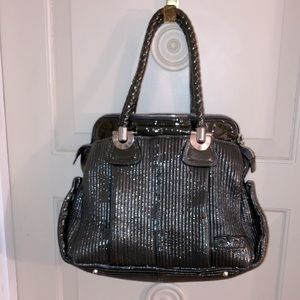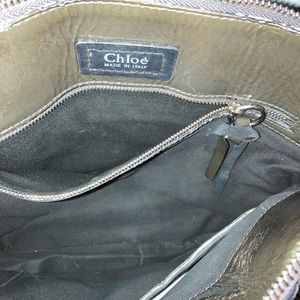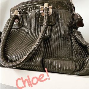 The very famous CHLOE HELOISE bag In a beautiful shiny patent leather olive green with silver substantial hardware.