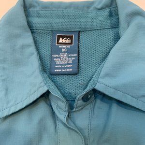 REI Size XS Aqua Buttoned Down Short Sleeve Shirt.