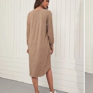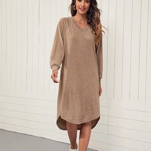 Marled tan v-neck long sleeved dress