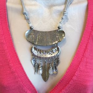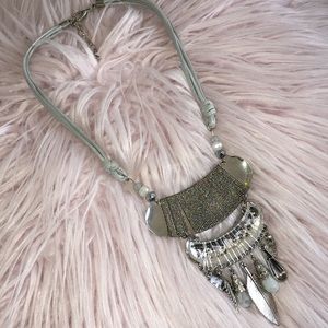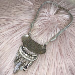 Stunning Silver Bohemian Statement Necklace With Lots of Embellished Details