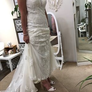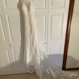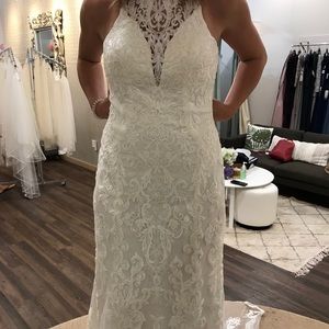 Never worn Stella York wedding dress. Postpone our wedding in 2020 and ended up getting a new dress for our wedding in 2021. Long beautiful train and high neck! This dress was altered and cups added for extra support.