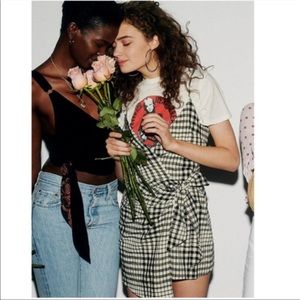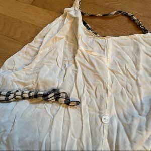 Straps are adjustable, lined, clip and button on inside, tie on side