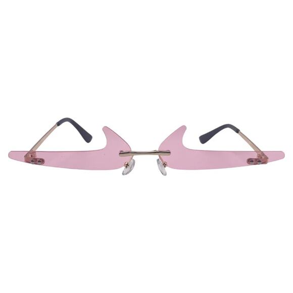 6170 | Pink Backward Checkmark Novelty Rimless Sunglasses