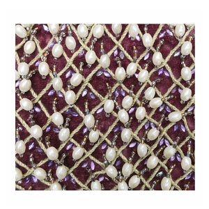 Amazing burgundy color velvet pouch bag with hand-beaded pearl detail.