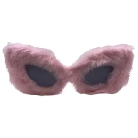 ☑️ 1 Pair of Fuzzy Cateye Shaped Sunglasses