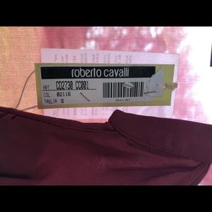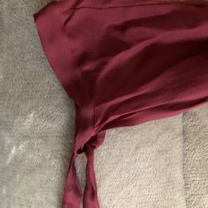 Sheer Burgundy Roberto Cavalli Ruffled Blouse. No buttons…ties up the front (please see photo).