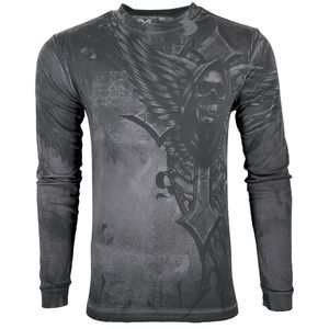 ARCHAIC by AFFLICTION Men's Long Sleeve THERMAL Shirt RED FLAG Biker Black
