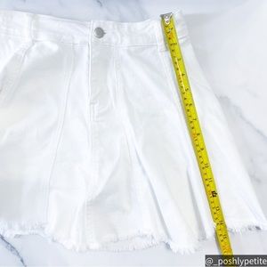 White denim raw cut hem mini skirt