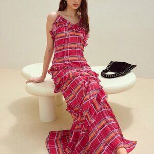 Red So Soft and Cozy Gingham Plaid Print Long tedd